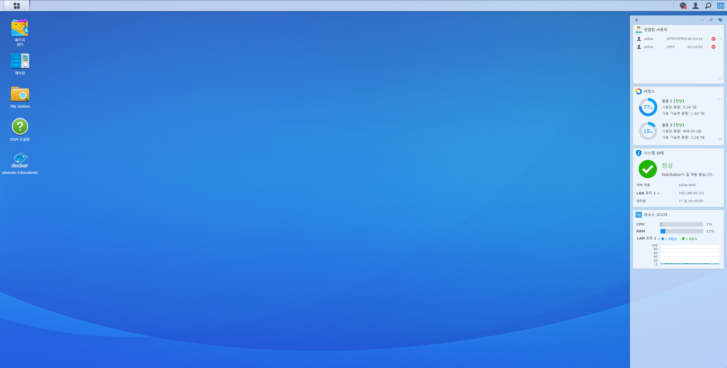 먼저 시놀로지 나스의 스냅샷을 설정하는 법입니다. 먼저 시놀로지 나스 서버에 접속합니다.
