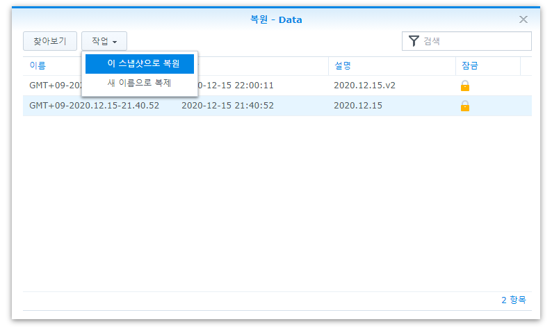 시놀로지 나스 스냅샷으로 데이터 복구하기